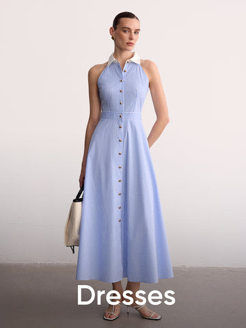 2 in 1 Cable-Knit Paneled Striped Midi Dress