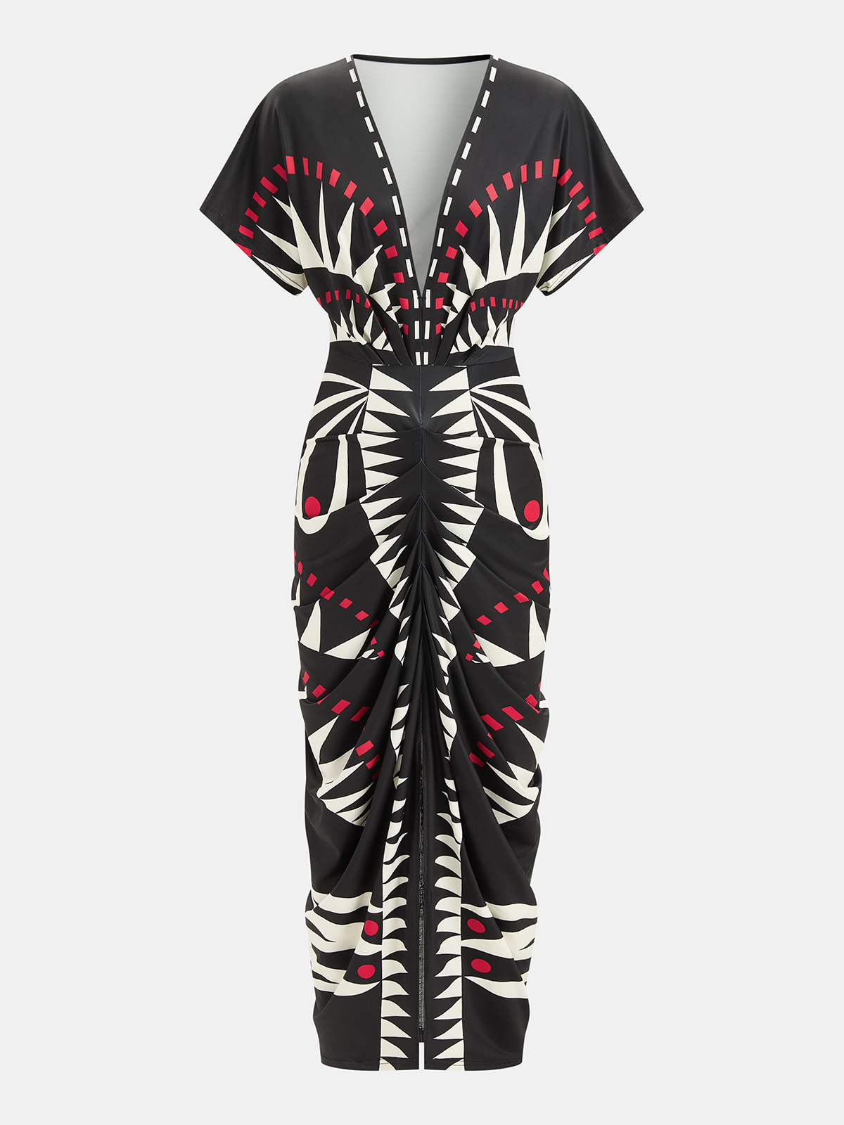 Geometric Print Deep V-Neck Midi Dress