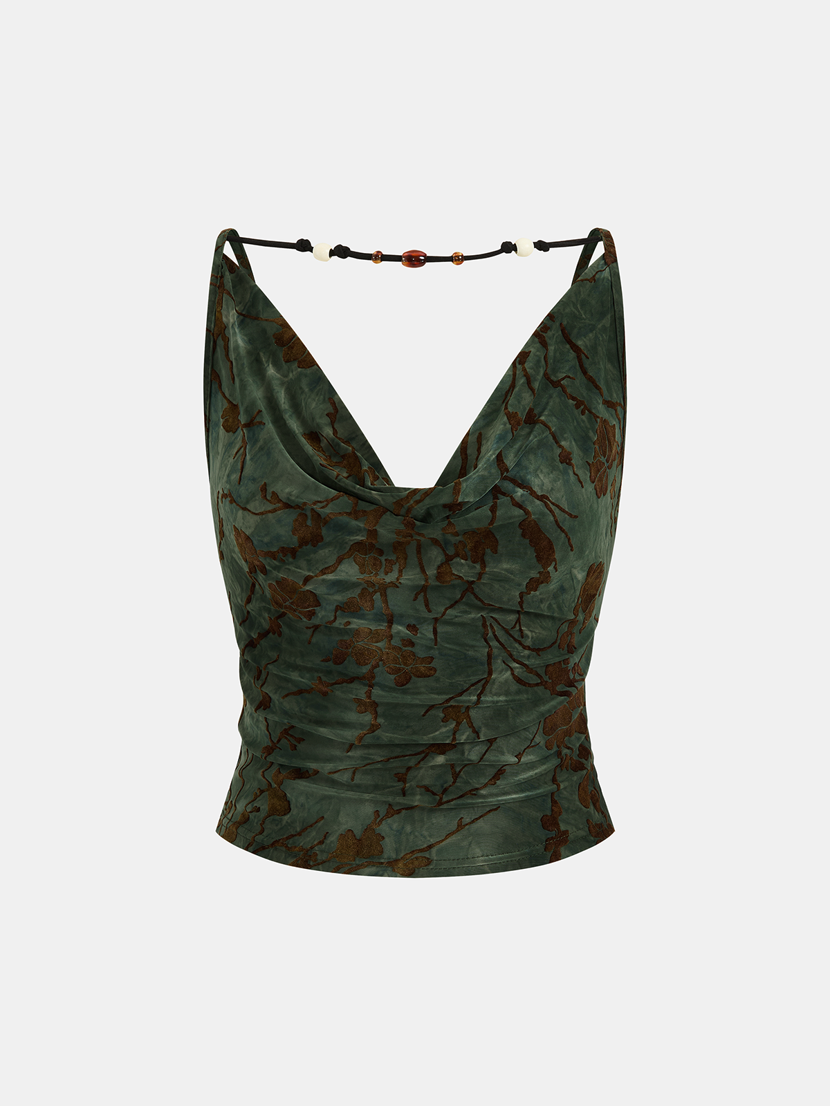 Flocked Floral Cowl Neck Cami Top