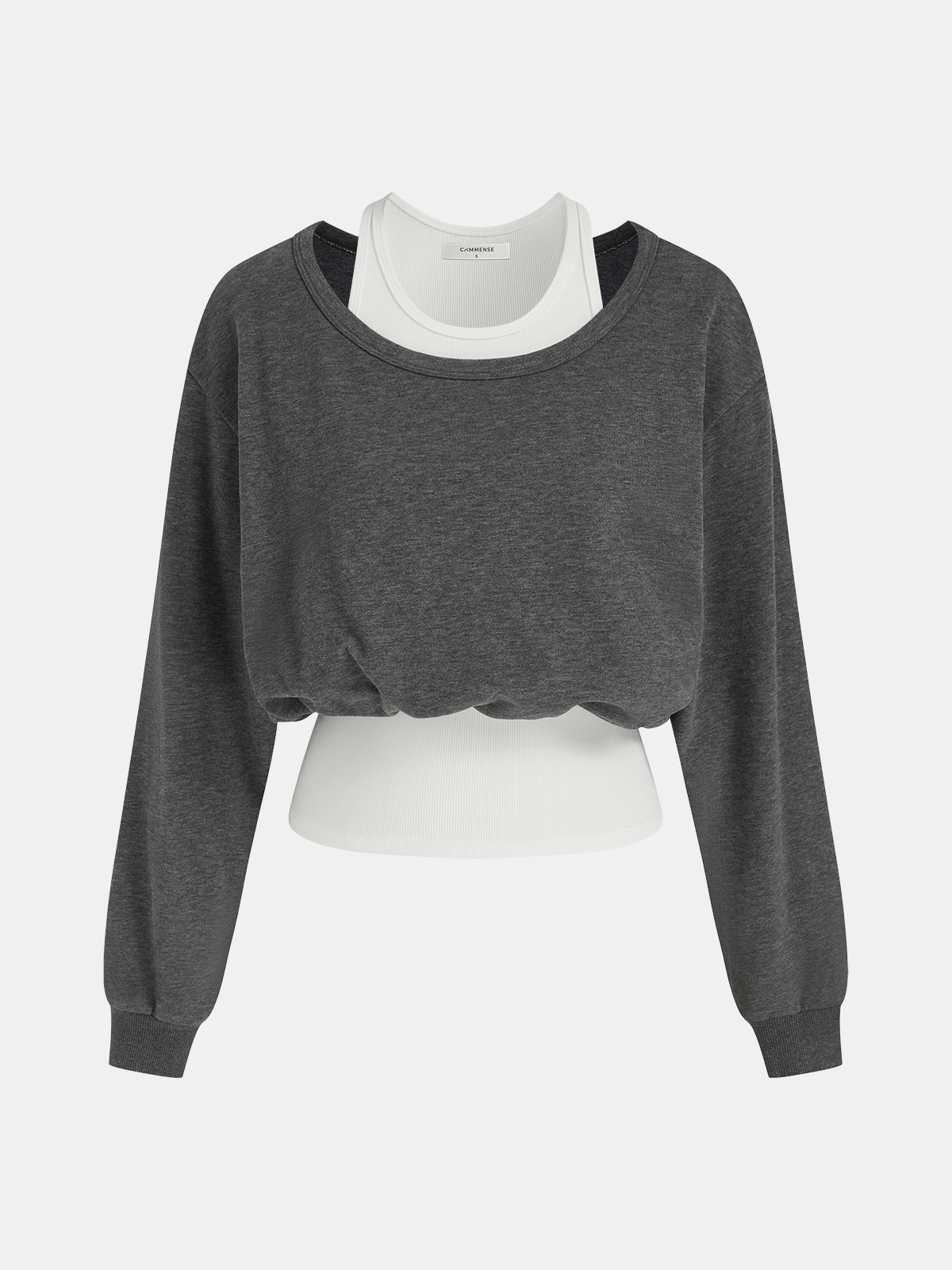 Cropped Sweatshirt with Ribbed Tank Two-Piece Set