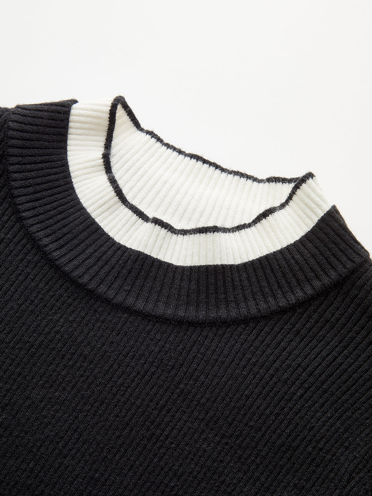 2 in 1 Contrast Cuff Mock Neck Ribbed Knit Top