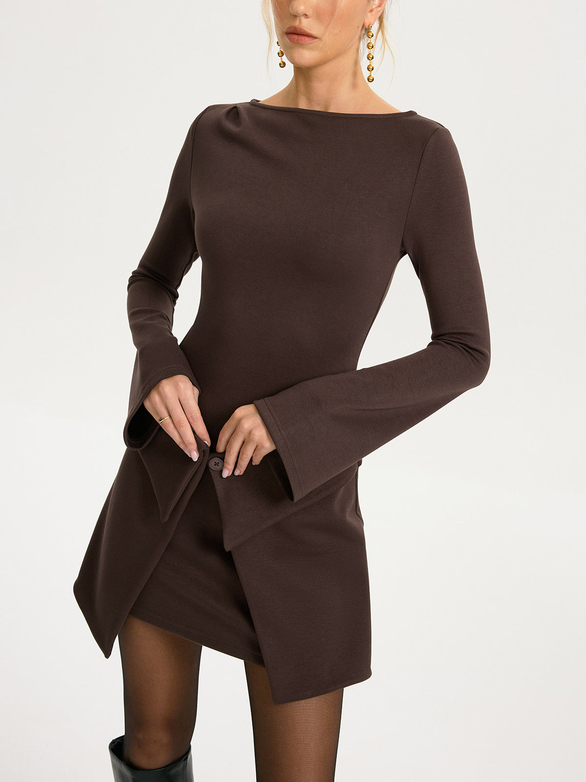 2 in 1 Wrap Long-Sleeve Mini Dress