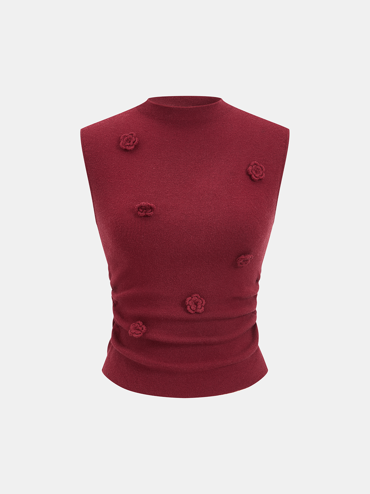 3D Floral Sleeveless Mock Neck Top