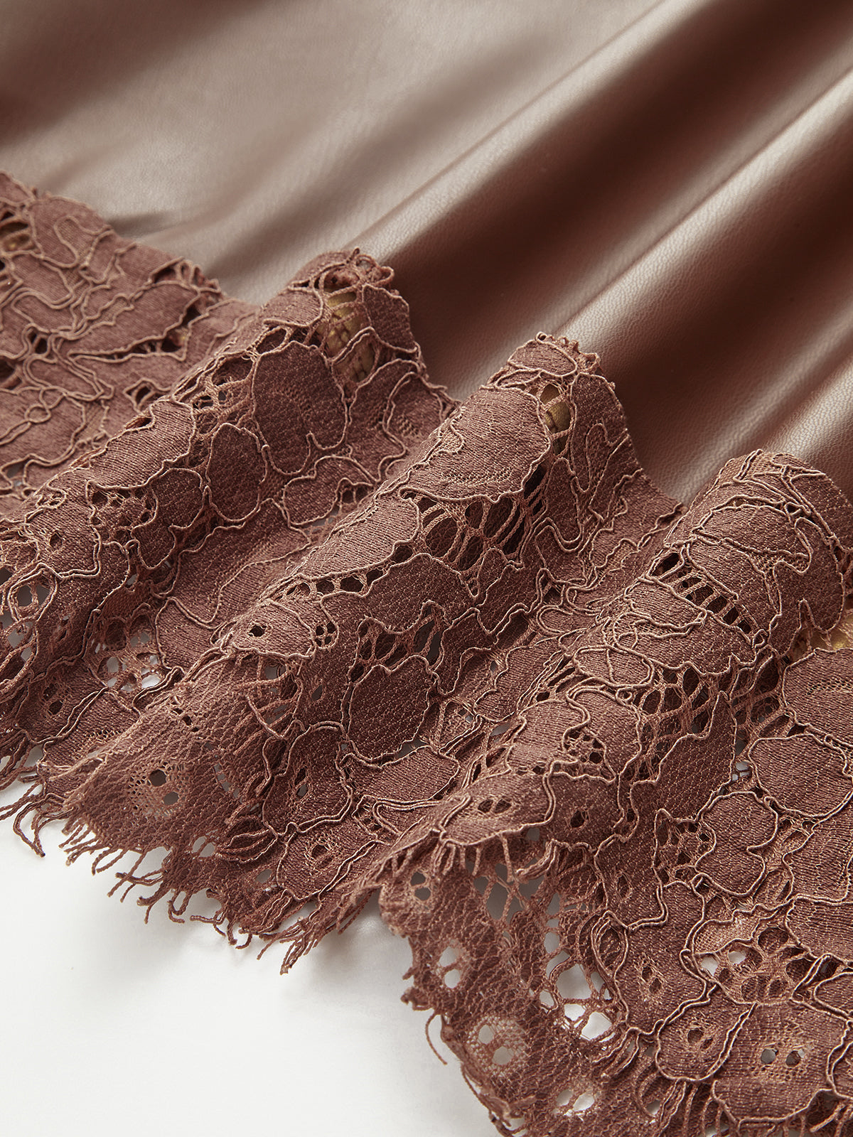 A-Line Lace Trim Faux Leather Midi Skirt