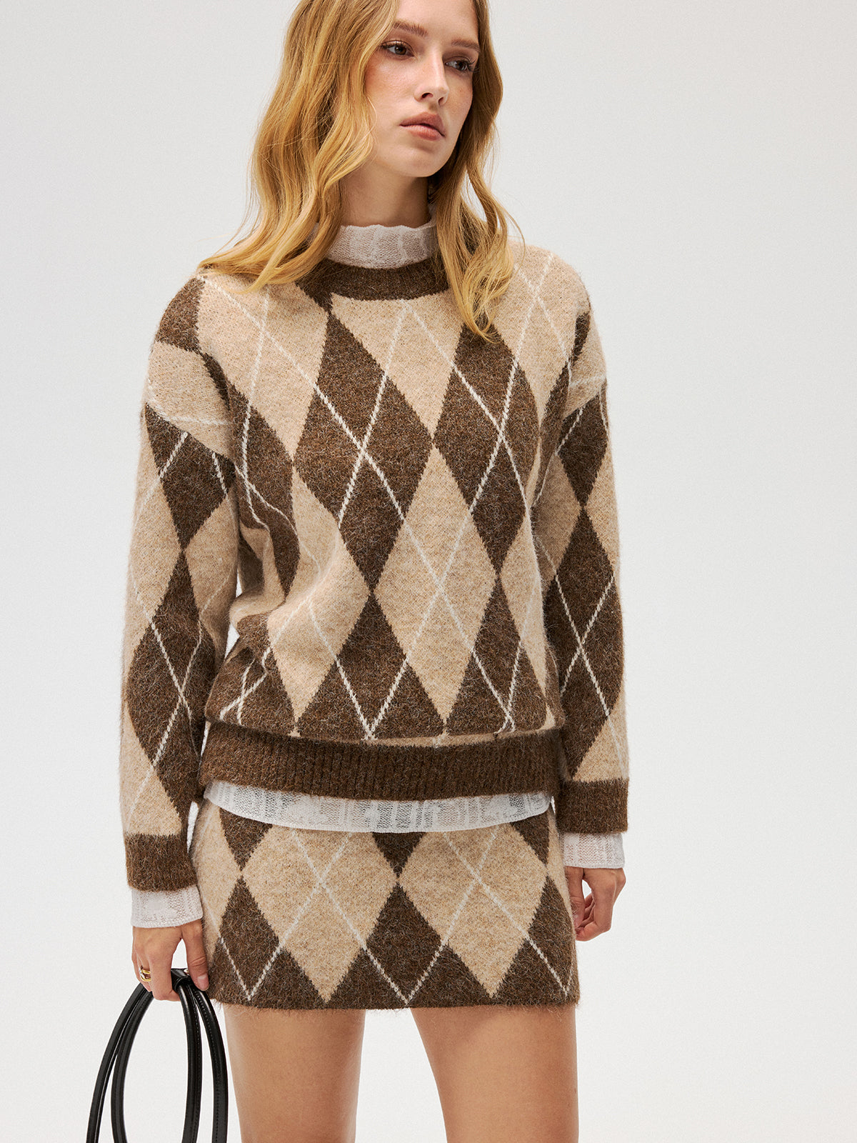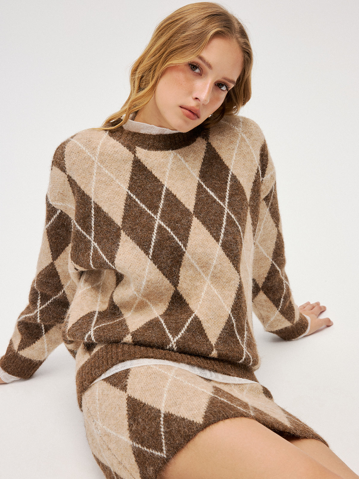 Argyle Knit Sweater & Mini Skirt Set