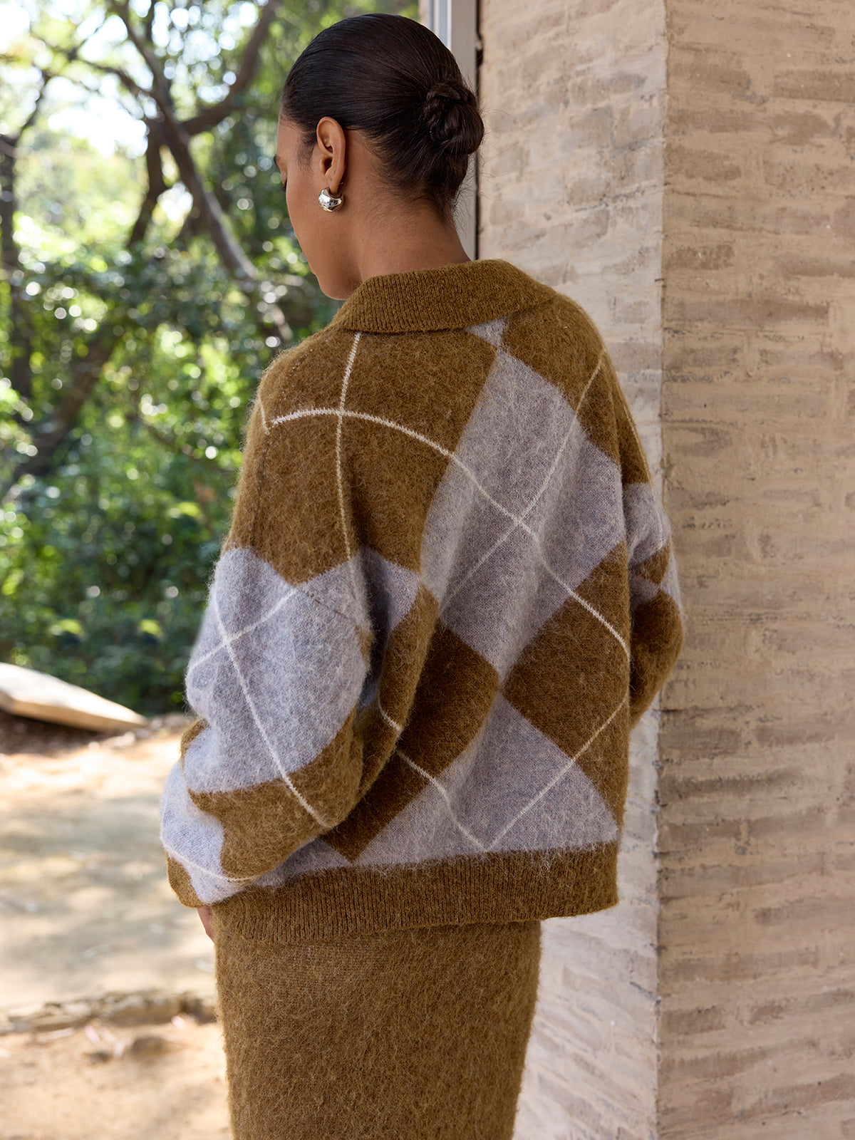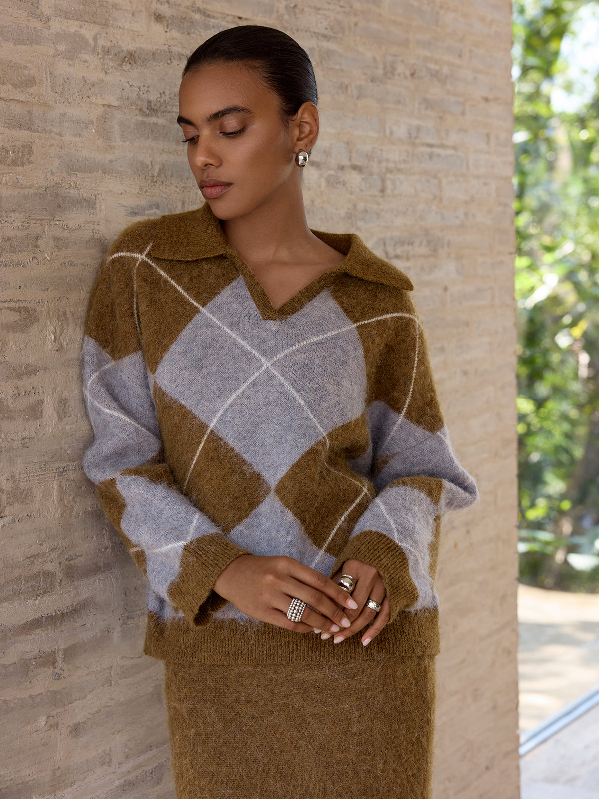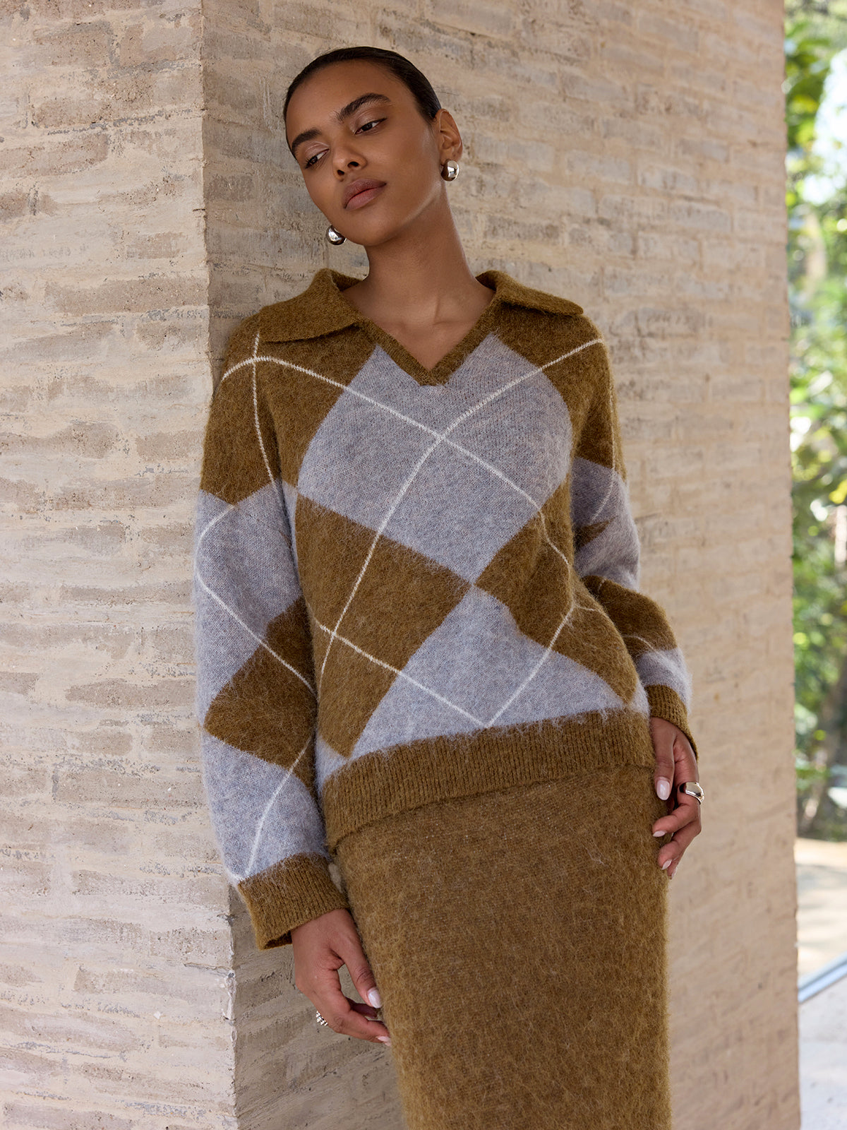 Argyle Wool-Blend Sweater & Maxi Skirt Set