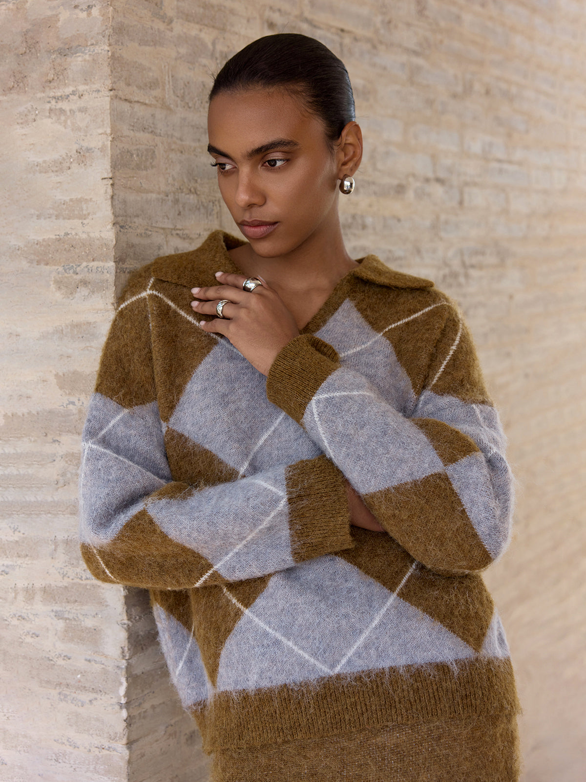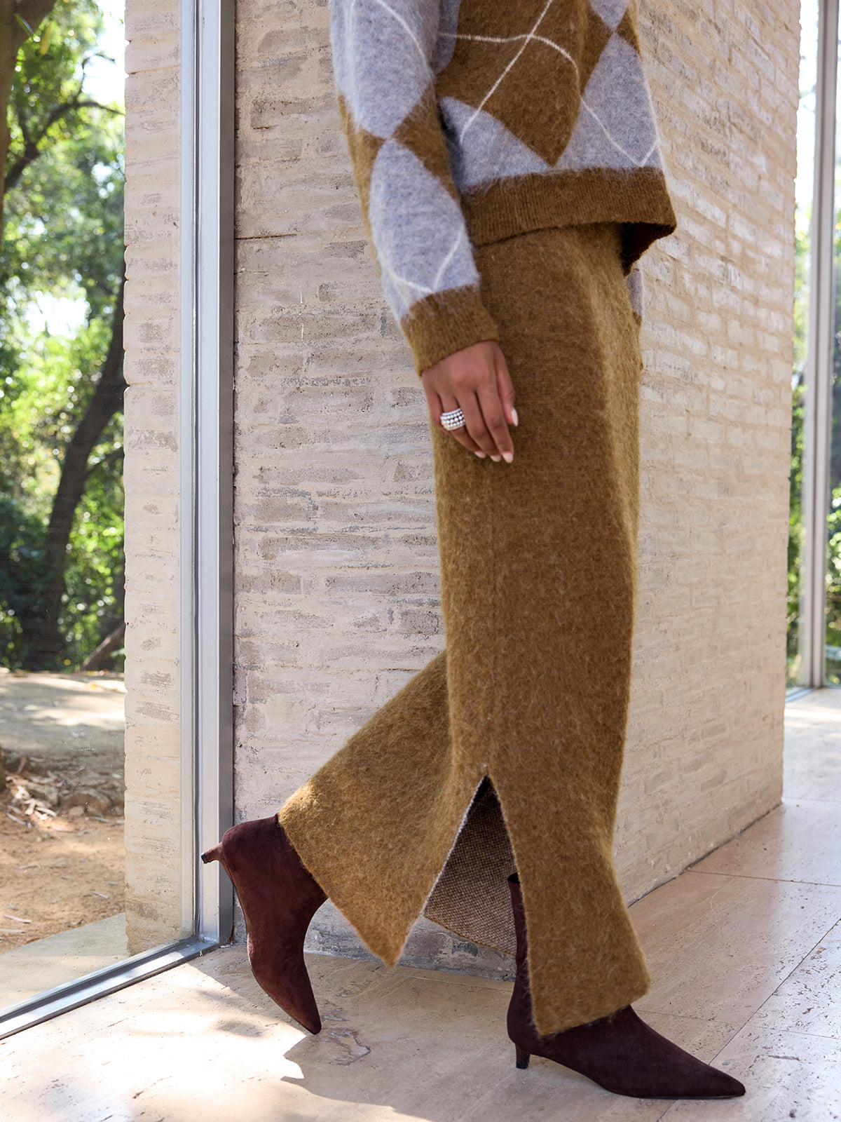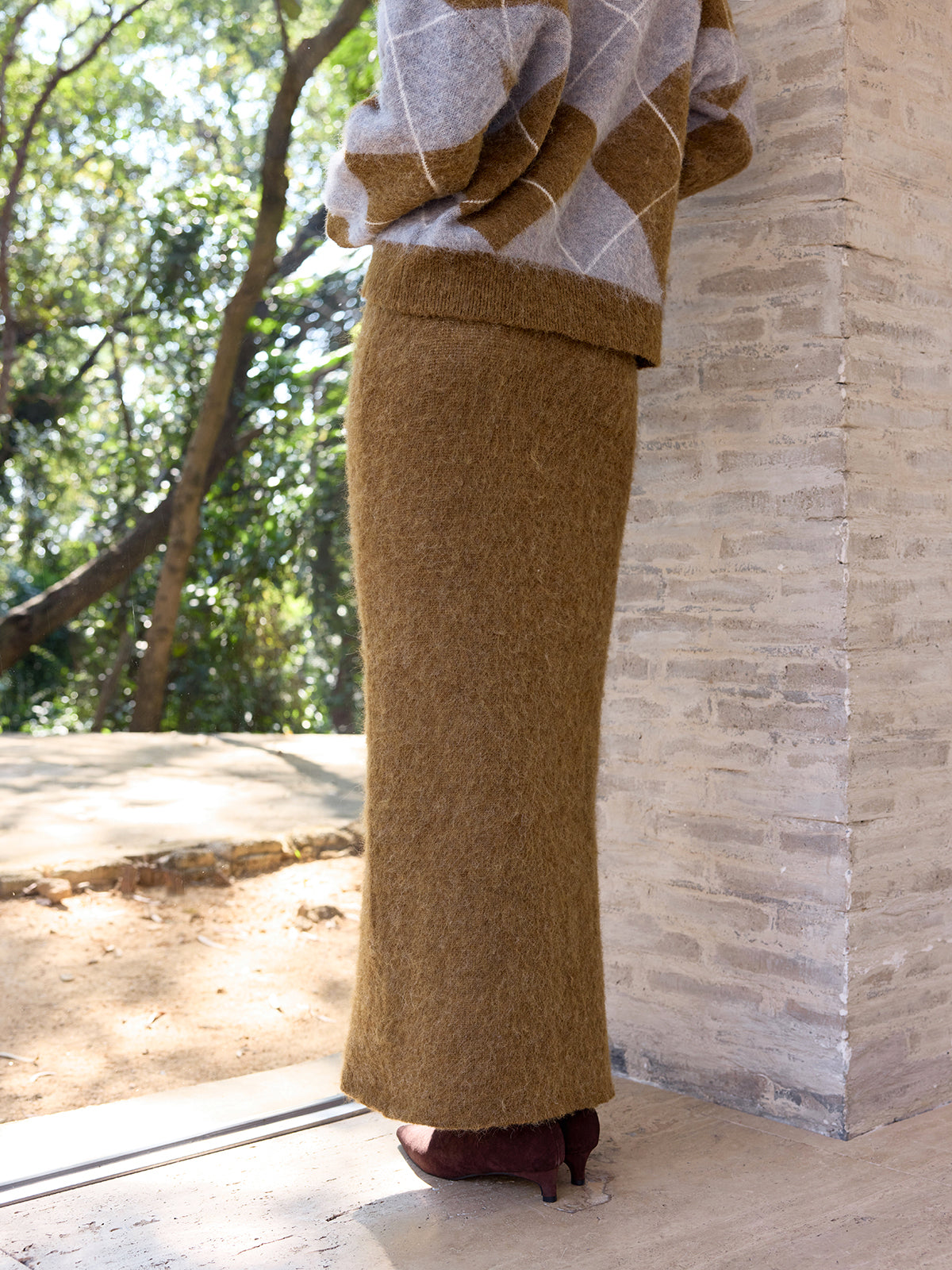 Argyle Wool-Blend Sweater & Maxi Skirt Set