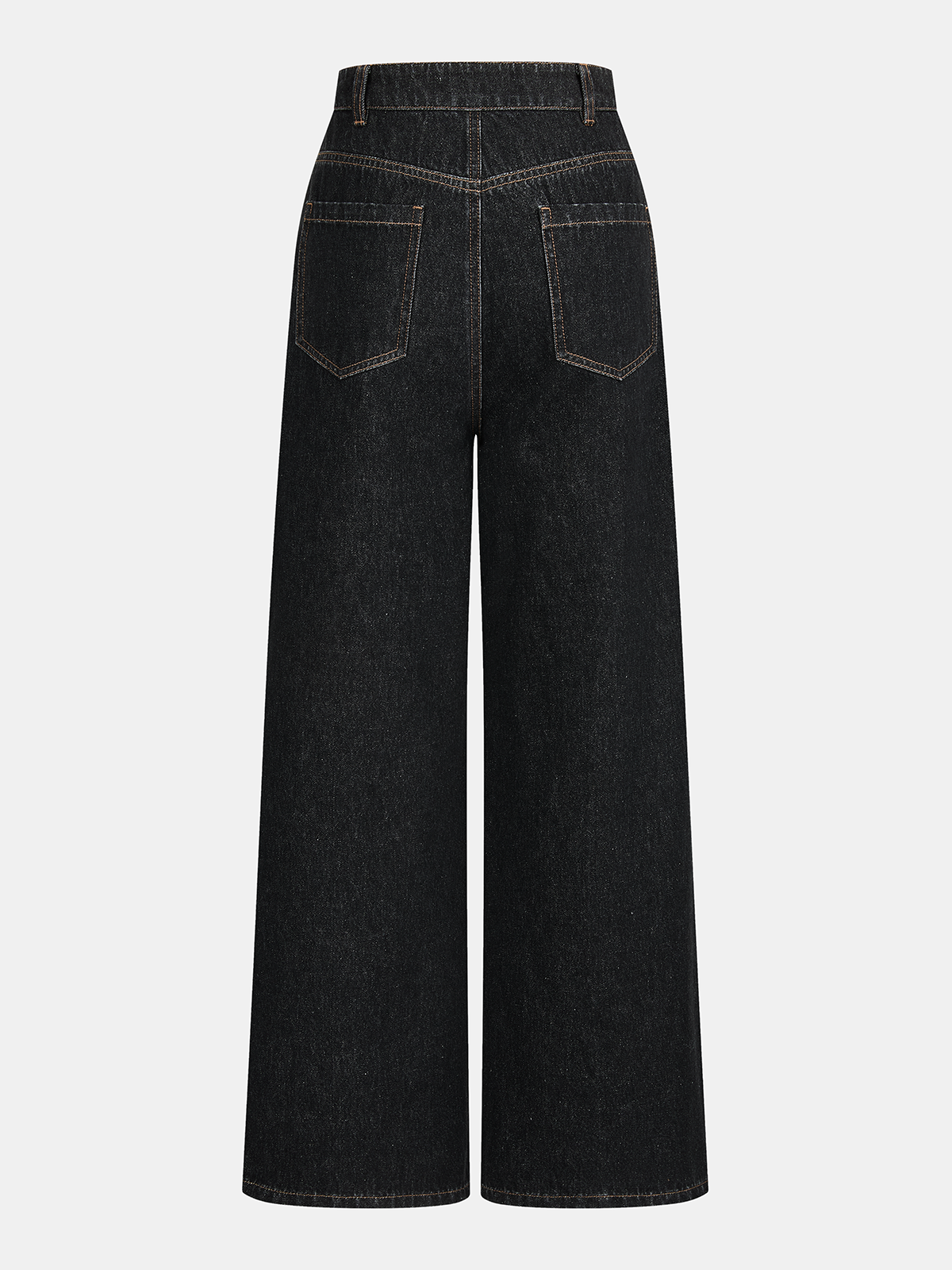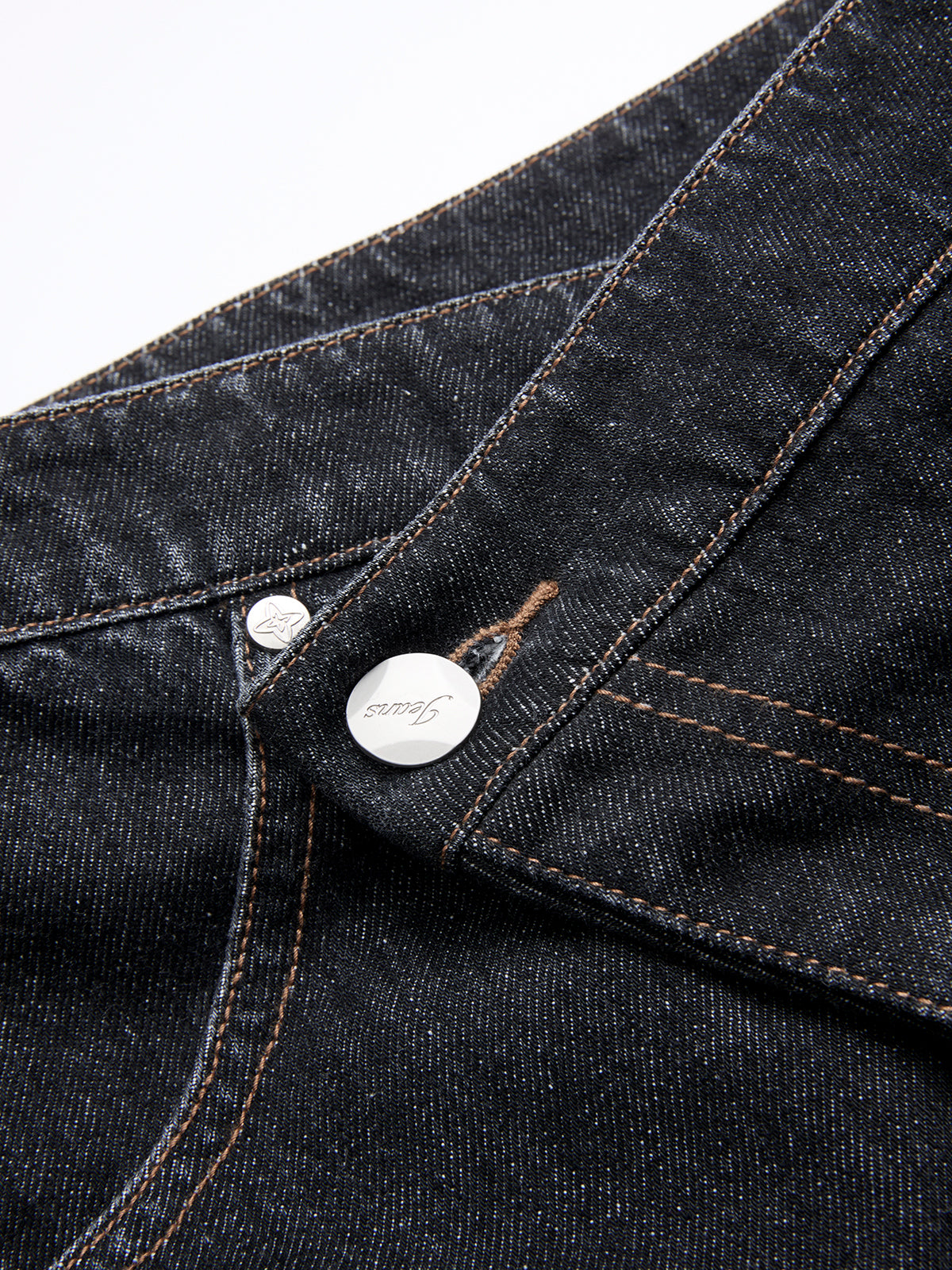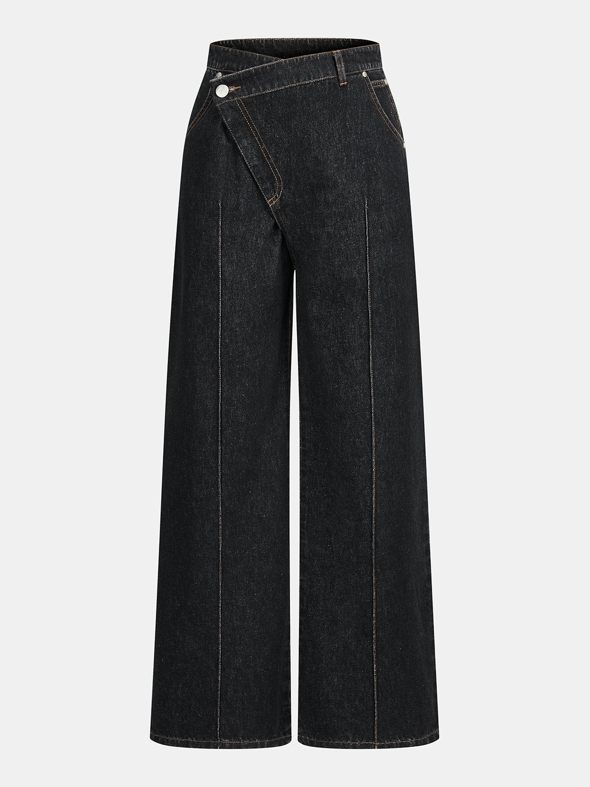 Asymmetric Denim Mid-Waist Straight -Leg Jeans