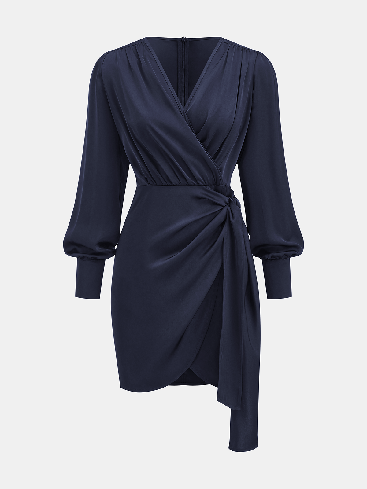 Asymmetric Satin Wrap Mini Dress