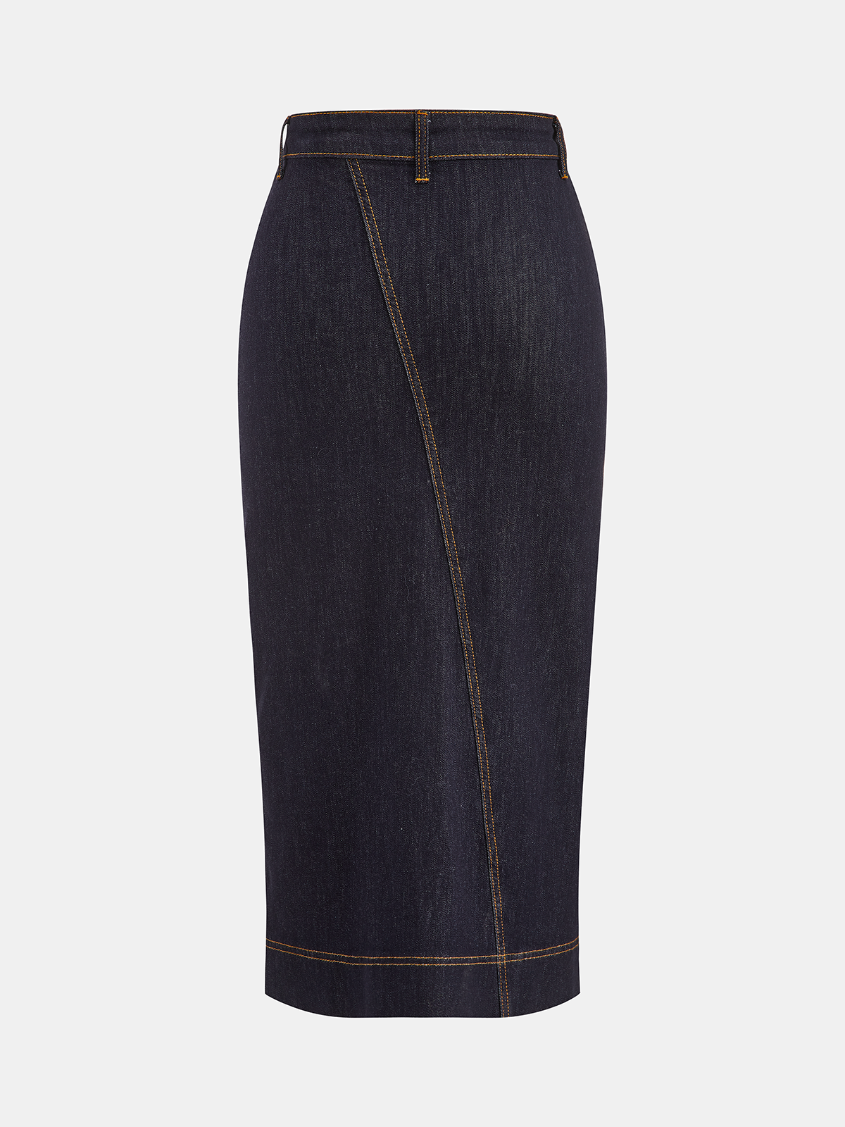 Asymmetric Slit Denim Midi Skirt