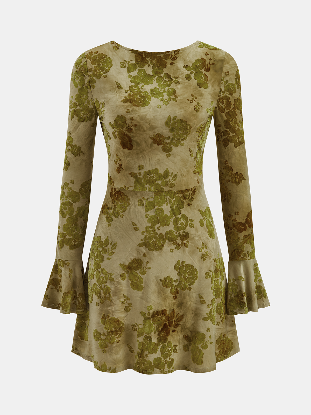Backless Bell Cuff Floral Print Long-Sleeve Dress