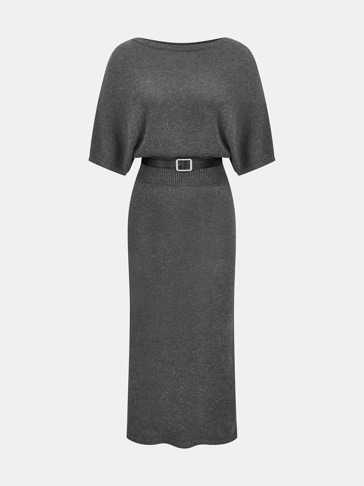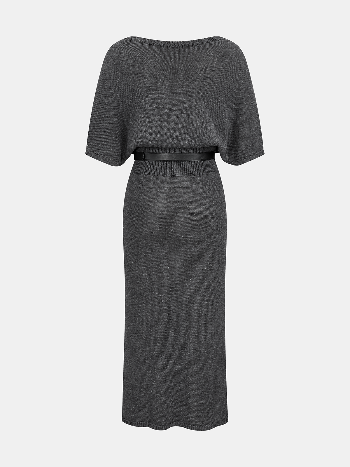 Batwing Sleeve Belted Knit Midi Dress