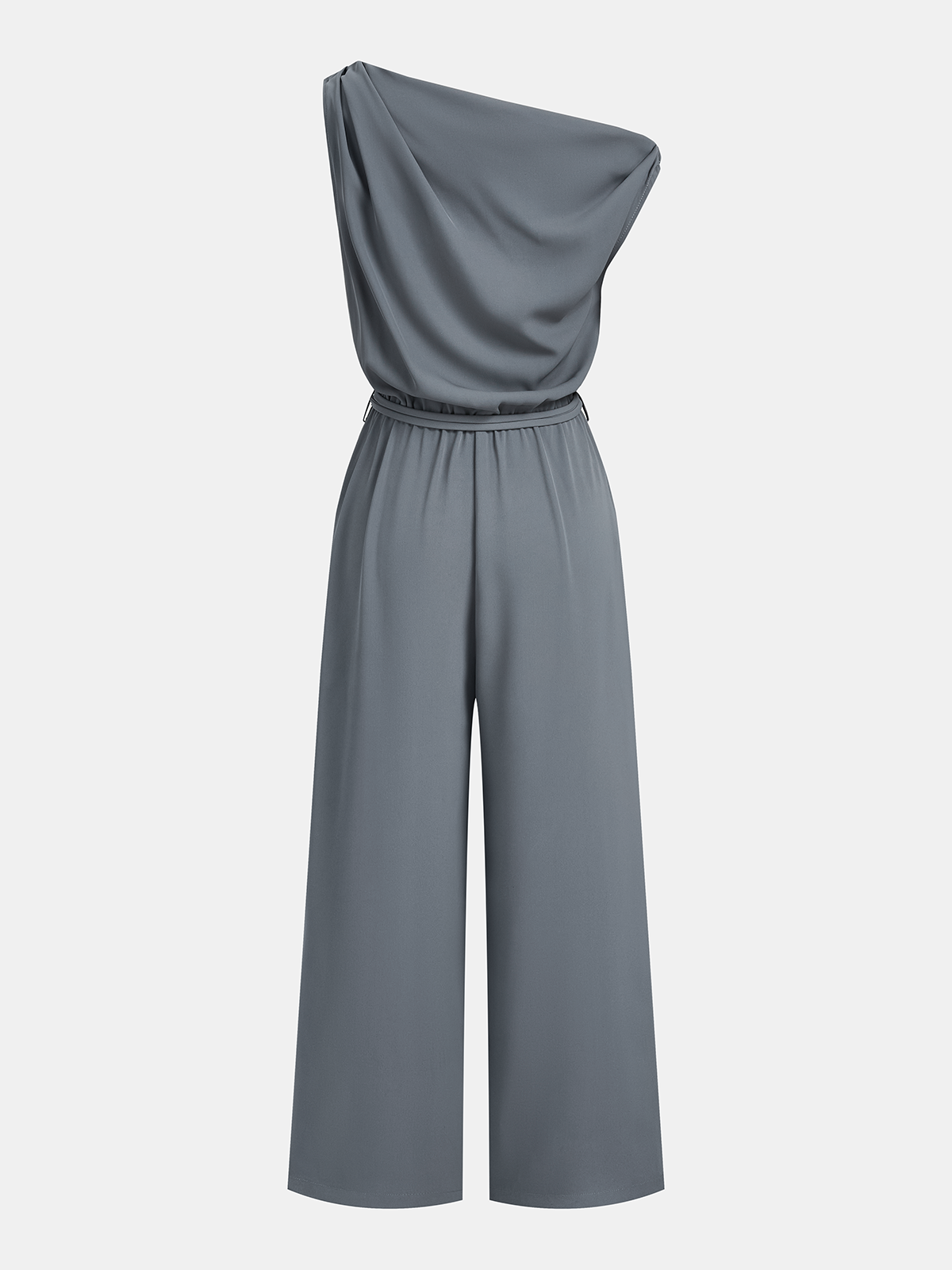 Belted One-Shoulder Draped Jumpsuit