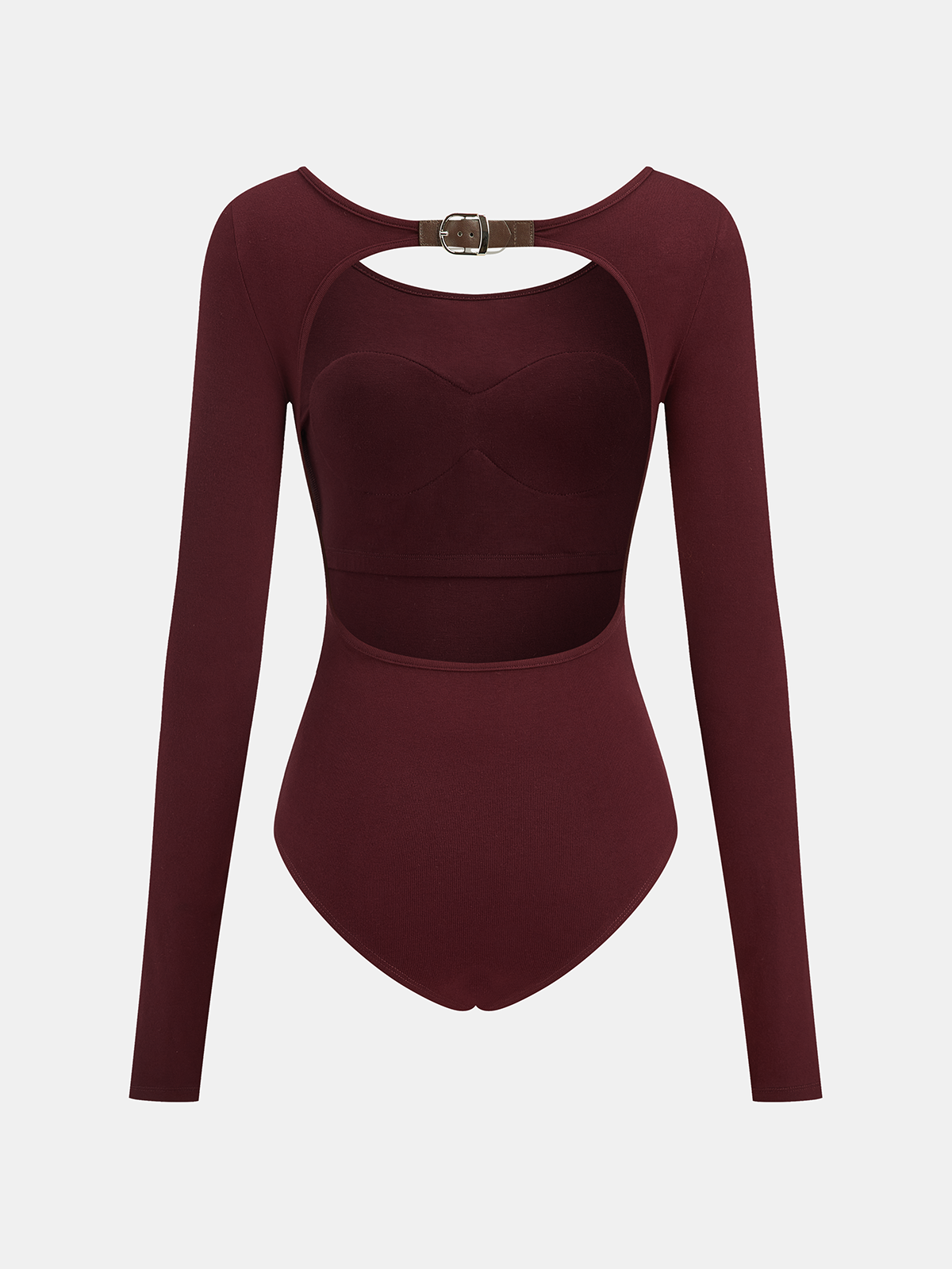 Bra-Free Buckle Detail Backless Long-Sleeve Bodysuit