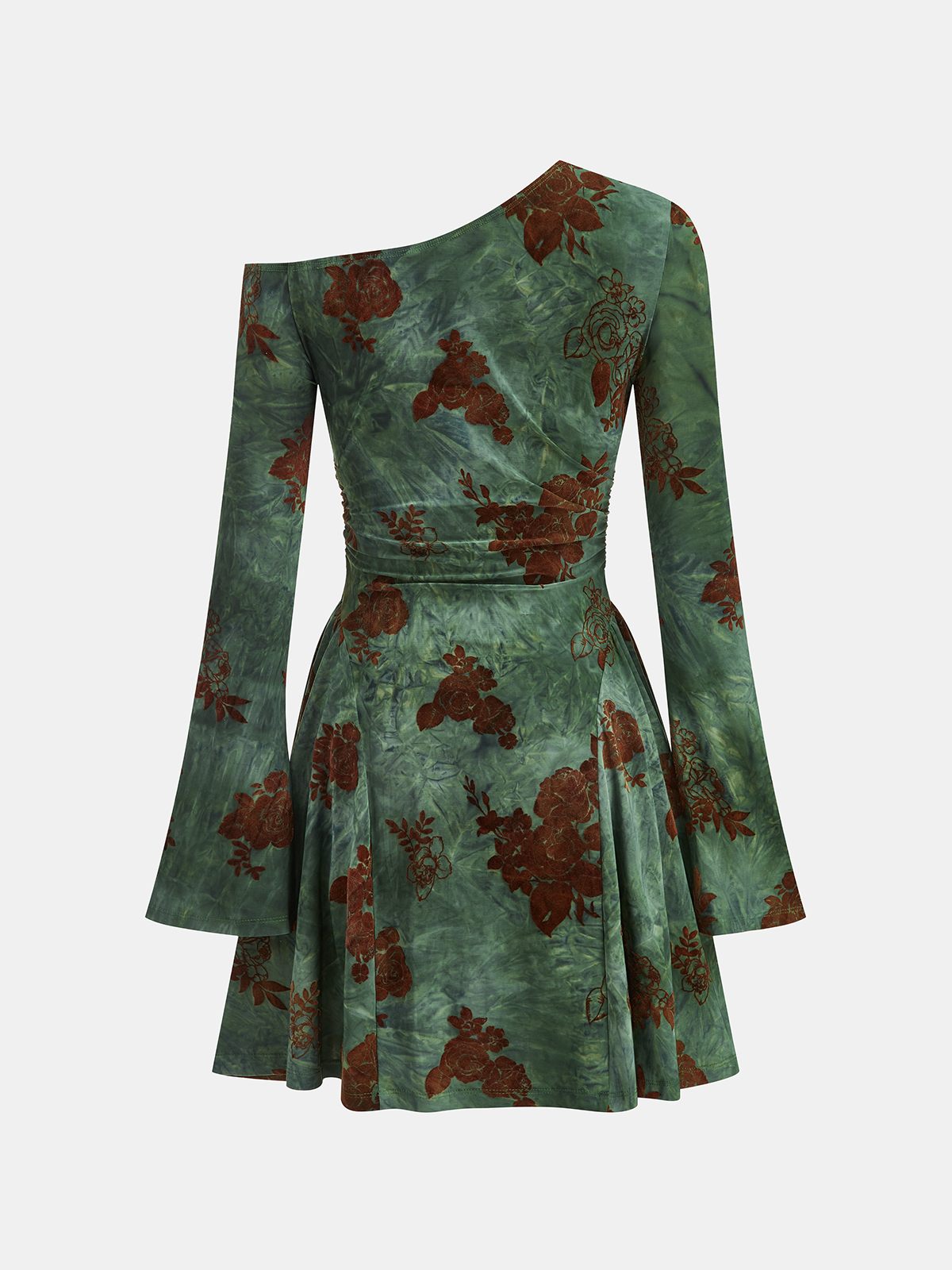 Flocked Floral Print One-Shoulder Mini Dress